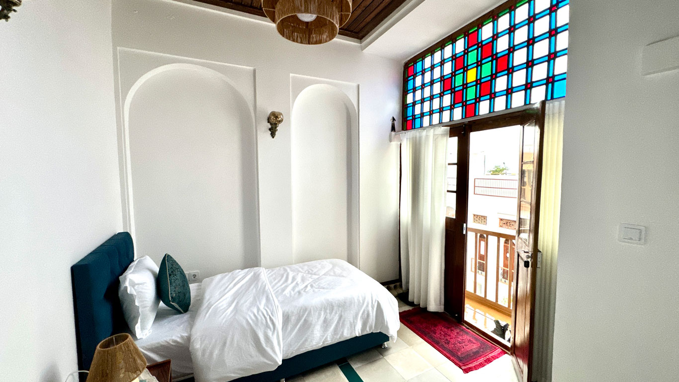 این اتاق در طبقه دوم واقع شده، اتاقی بسیار آرام با فضای دنج، با ارسی سه دری رو به حیاط عمارت و چشم اندازی فوق العاده، از دیگر جذابیت های این تالار تراس رو به دریا هست. تراس اتاق از چوب های وارداتی آفریقایی ساخته شده است که 180 سال قدمت دارن و ایستادن در این تراس و راه رفتن روی این چوب حس جذابی به مهمان می دهد. به دلیل نسیم دریای که به این اتاق می وزد، اتاق خنکی است که در زمان های قدیم خانواده گلشن عصر ها در این مکان استراحت می کردند. اتاق با چیدمان خاص، سیستم امنیتی قوی و کلیه امکانات رفاهی، آماده اقامت شما عزیزان میباشد.